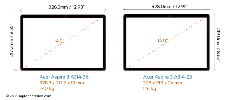 Audio JackBoth Aspire 3 A314-36 and Aspire 3 A314-23 are equipped with a 3.5mm Audio Jack, providing seamless connection to headphones and speakers.