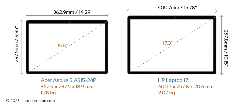 HDMIBoth Aspire 3 A315-24P and Laptop 17 feature an HDMI port. Aspire 3 A315-24P offers 1x HDMI 2.1, while Laptop 17 offers 1x HDMI 1.4.