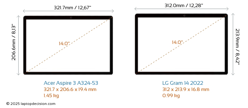 ThunderboltGram 14 2022 is equipped with Thunderbolt 4 port. Aspire 3 A324-53 does not have Thunderbolt port.