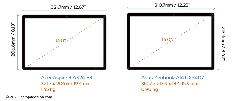 Audio JackBoth Aspire 3 A324-53 and Zenbook A14 UX3407 are equipped with a 3.5mm Audio Jack, providing seamless connection to headphones and speakers.