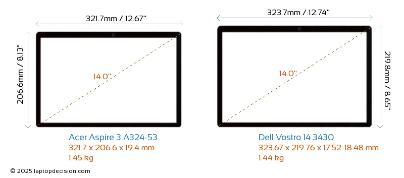 HDMIBoth Aspire 3 A324-53 and Vostro 14 3430 feature an HDMI port (1x HDMI 1.4) for connecting to external monitors.
