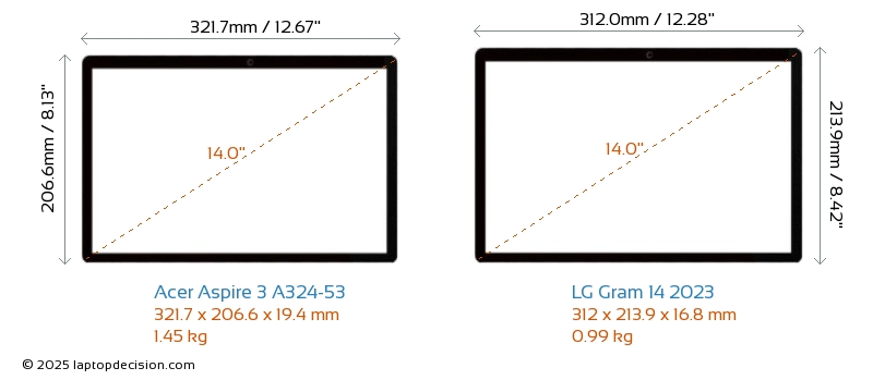 SD Card Reader Gram 14 2023 is equipped with an SD Card Reader for easy access to memory cards. Aspire 3 A324-53 does not have an SD Card Reader.