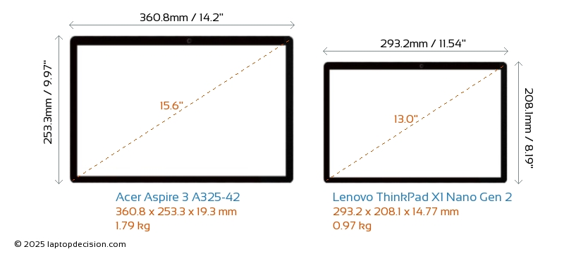 ThunderboltThinkPad X1 Nano Gen 2 is equipped with Thunderbolt 4 port. Aspire 3 A325-42 does not have Thunderbolt port.