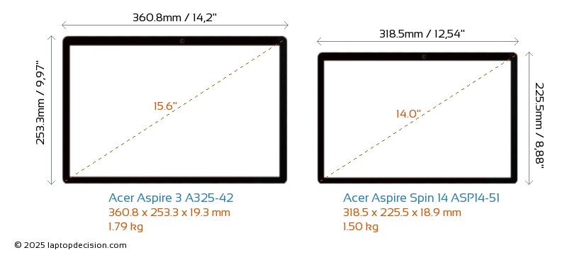 SD Card Reader Aspire 3 A325-42 is equipped with an SD Card Reader for easy access to memory cards. Aspire Spin 14 ASP14-51 does not have an SD Card Reader.