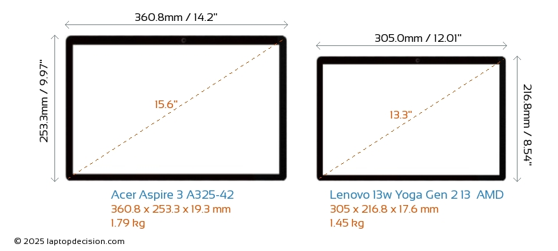 USBBoth Aspire 3 A325-42 and 13w Yoga Gen 2 13 AMD feature 2x USB 3.2 USB-A ports.Both Aspire 3 A325-42 and 13w Yoga Gen 2 13 AMD feature 2x USB 3.2 USB Type-C ports.