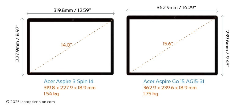 HDMIBoth Aspire 3 Spin 14 and Aspire Go 15 AG15-31 feature an HDMI port. Aspire 3 Spin 14 offers 1x HDMI 2.1, while Aspire Go 15 AG15-31 offers 1x HDMI 1.4.