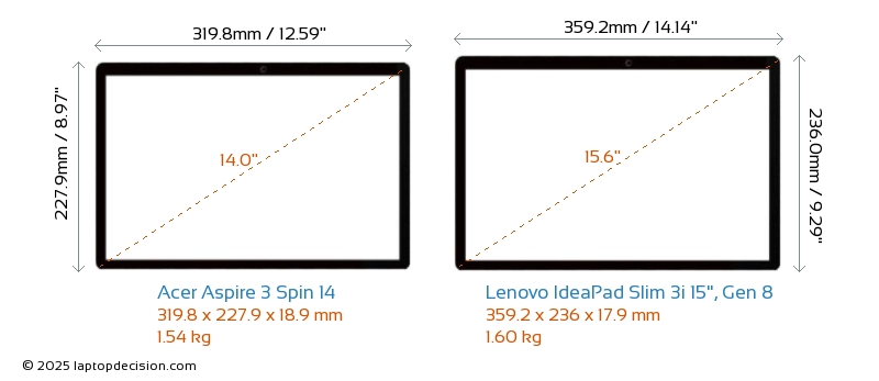USBBoth Aspire 3 Spin 14 and IdeaPad Slim 3i 15", Gen 8 feature 2x USB 3.2 USB-A ports.Both Aspire 3 Spin 14 and IdeaPad Slim 3i 15", Gen 8 feature 1x USB 3.2 USB Type-C ports.