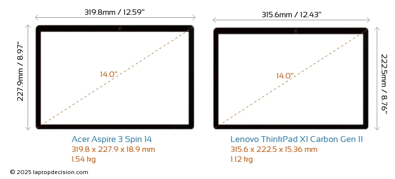 HDMIBoth Aspire 3 Spin 14 and ThinkPad X1 Carbon Gen 11 feature an HDMI port. Aspire 3 Spin 14 offers 1x HDMI 2.1, while ThinkPad X1 Carbon Gen 11 offers 1x HDMI 2.0.