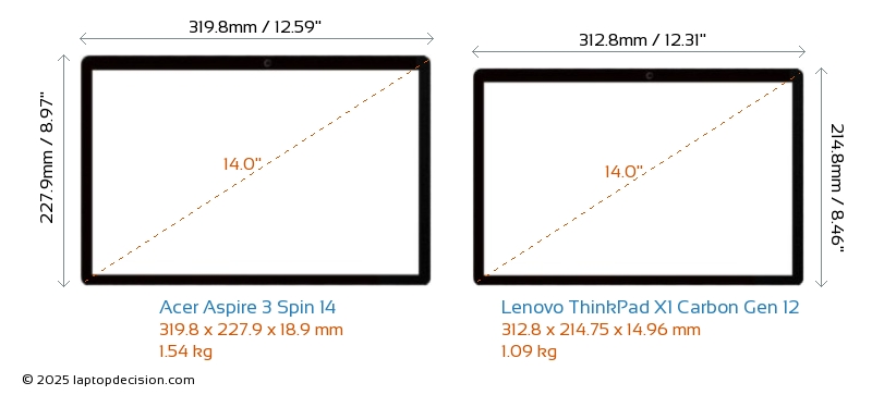 Audio JackBoth Aspire 3 Spin 14 and ThinkPad X1 Carbon Gen 12 are equipped with a 3.5mm Audio Jack, providing seamless connection to headphones and speakers.