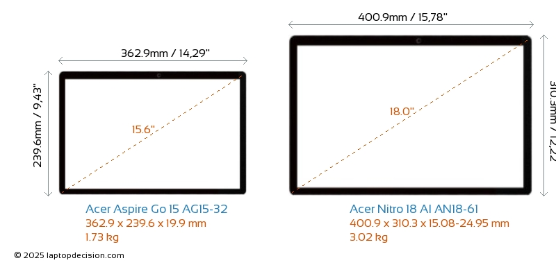 HDMIBoth Aspire Go 15 AG15-32 and Nitro 18 AI AN18-61 feature an HDMI port (1x HDMI 2.1) for connecting to external monitors.