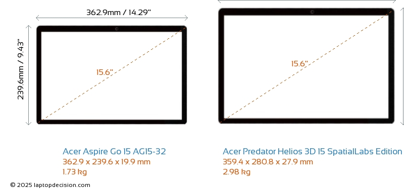 SD Card Reader Predator Helios 3D 15 SpatialLabs Edition is equipped with an SD Card Reader for easy access to memory cards. Aspire Go 15 AG15-32 does not have an SD Card Reader.