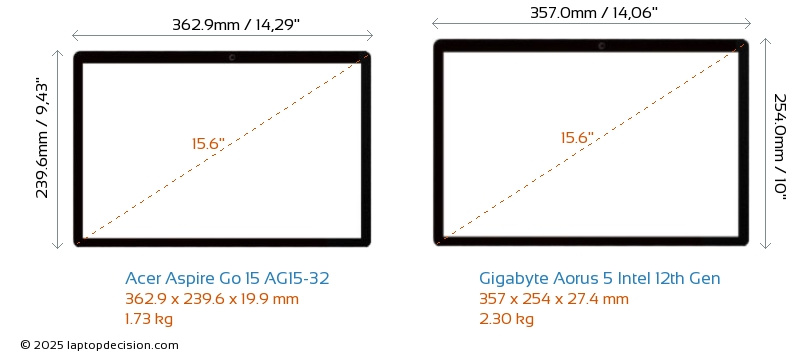 SD Card Reader Aorus 5 Intel 12th Gen is equipped with an SD Card Reader for easy access to memory cards. Aspire Go 15 AG15-32 does not have an SD Card Reader.