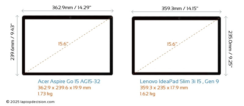 HDMIBoth Aspire Go 15 AG15-32 and IdeaPad Slim 3i 15 , Gen 9 feature an HDMI port. Aspire Go 15 AG15-32 offers 1x HDMI 2.1, while IdeaPad Slim 3i 15 , Gen 9 offers 1x HDMI 1.4.