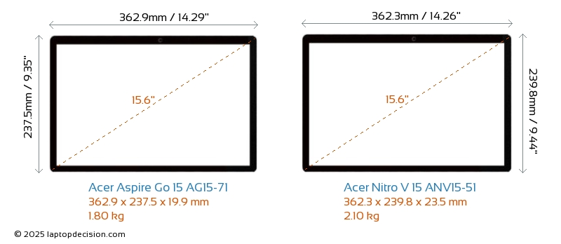 USBBoth Aspire Go 15 AG15-71 and Nitro V 15 ANV15-51 have USB-A ports. Aspire Go 15 AG15-71 has 2x USB 3.2 USB-A ports, while Nitro V 15 ANV15-51 has 3x USB 3.2 USB-A ports.Both Aspire Go 15 AG15-71 and Nitro V 15 ANV15-51 have USB Type-C ports. Aspire Go 15 AG15-71 has 2x USB 3.2 USB Type-C ports, while Nitro V 15 ANV15-51 has 1x USB 3.2 USB Type-C ports.