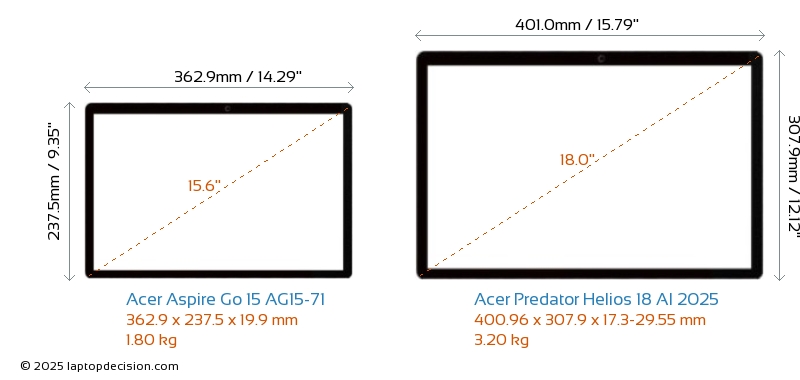 HDMIBoth Aspire Go 15 AG15-71 and Predator Helios 18 AI 2025 feature an HDMI port (1x HDMI 2.1) for connecting to external monitors.