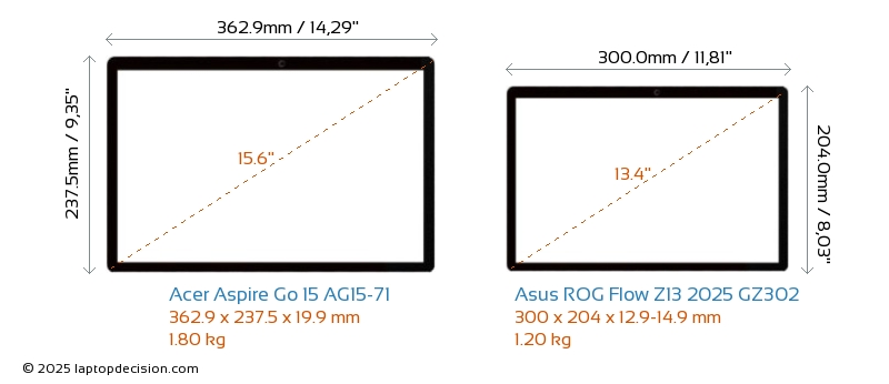 USBBoth Aspire Go 15 AG15-71 and ROG Flow Z13 2025 GZ302 have USB-A ports. Aspire Go 15 AG15-71 has 2x USB 3.2 USB-A ports, while ROG Flow Z13 2025 GZ302 has 1x USB 3.2 USB-A ports.Both Aspire Go 15 AG15-71 and ROG Flow Z13 2025 GZ302 have USB Type-C ports. Aspire Go 15 AG15-71 has 2x USB 3.2 USB Type-C ports, while ROG Flow Z13 2025 GZ302 has 2x USB 4.0 USB Type-C ports.