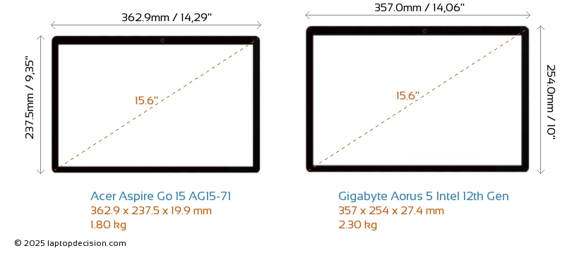 HDMIBoth Aspire Go 15 AG15-71 and Aorus 5 Intel 12th Gen feature an HDMI port (1x HDMI 2.1) for connecting to external monitors.