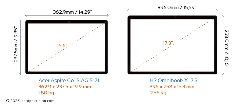 Wifi Omnibook X 17.3 features a more advanced Wi-Fi standard v7, providing faster and more reliable wireless connections compared to Aspire Go 15 AG15-71 (v6).