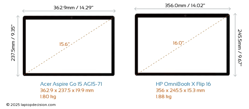 Wifi OmniBook X Flip 16 features a more advanced Wi-Fi standard v7, providing faster and more reliable wireless connections compared to Aspire Go 15 AG15-71 (v6).