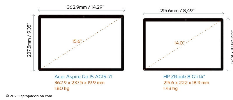 HDMIBoth Aspire Go 15 AG15-71 and ZBook 8 G1i 14" feature an HDMI port (1x HDMI 2.1) for connecting to external monitors.