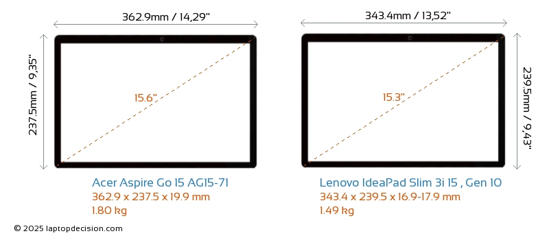 HDMIBoth Aspire Go 15 AG15-71 and IdeaPad Slim 3i 15 , Gen 10 feature an HDMI port. Aspire Go 15 AG15-71 offers 1x HDMI 2.1, while IdeaPad Slim 3i 15 , Gen 10 offers 1x HDMI 1.4.