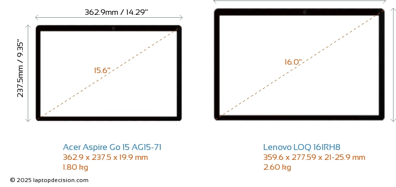 HDMIBoth Aspire Go 15 AG15-71 and LOQ 16IRH8 feature an HDMI port (1x HDMI 2.1) for connecting to external monitors.
