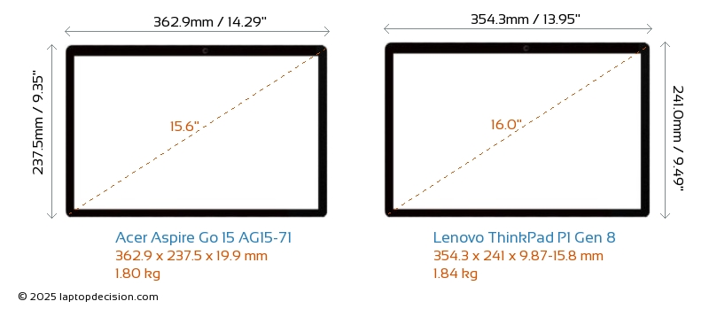 HDMIBoth Aspire Go 15 AG15-71 and ThinkPad P1 Gen 8 feature an HDMI port (1x HDMI 2.1) for connecting to external monitors.
