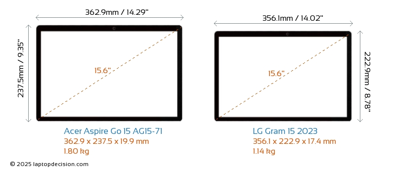 HDMIBoth Aspire Go 15 AG15-71 and Gram 15 2023 feature an HDMI port. Aspire Go 15 AG15-71 offers 1x HDMI 2.1, while Gram 15 2023 offers 1x HDMI 2.0.