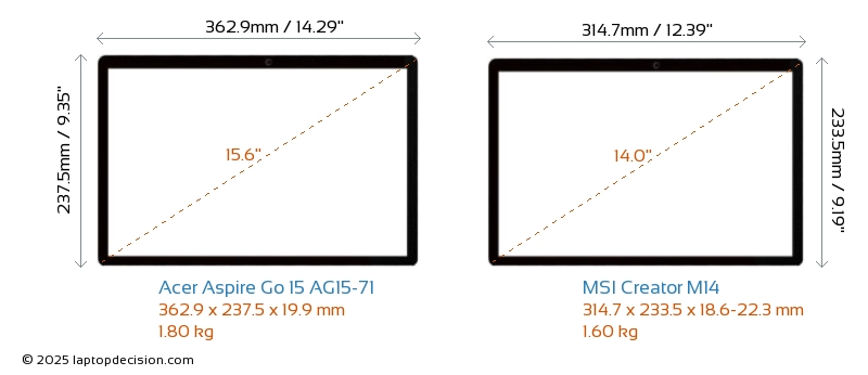 HDMIBoth Aspire Go 15 AG15-71 and Creator M14 feature an HDMI port (1x HDMI 2.1) for connecting to external monitors.