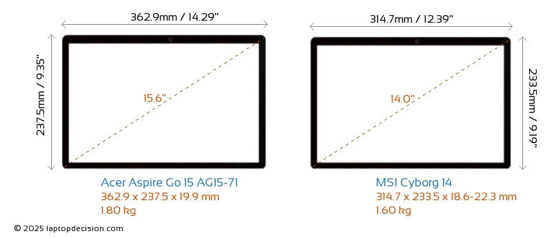 HDMIBoth Aspire Go 15 AG15-71 and Cyborg 14 feature an HDMI port (1x HDMI 2.1) for connecting to external monitors.