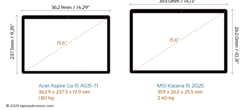 HDMIBoth Aspire Go 15 AG15-71 and Katana 15 2025 feature an HDMI port (1x HDMI 2.1) for connecting to external monitors.