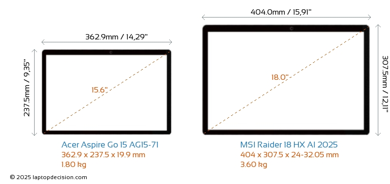 HDMIBoth Aspire Go 15 AG15-71 and Raider 18 HX AI 2025 feature an HDMI port (1x HDMI 2.1) for connecting to external monitors.