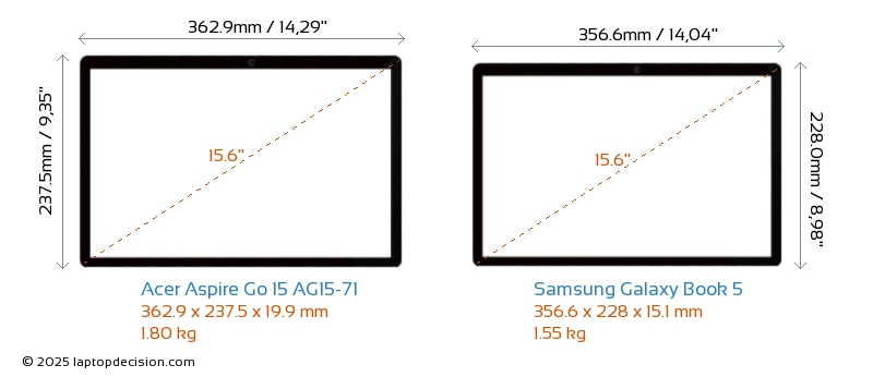 SD Card Reader Galaxy Book 5 is equipped with an SD Card Reader for easy access to memory cards. Aspire Go 15 AG15-71 does not have an SD Card Reader.