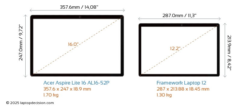 Audio JackBoth Aspire Lite 16 AL16-52P and Laptop 12 are equipped with a 3.5mm Audio Jack, providing seamless connection to headphones and speakers.