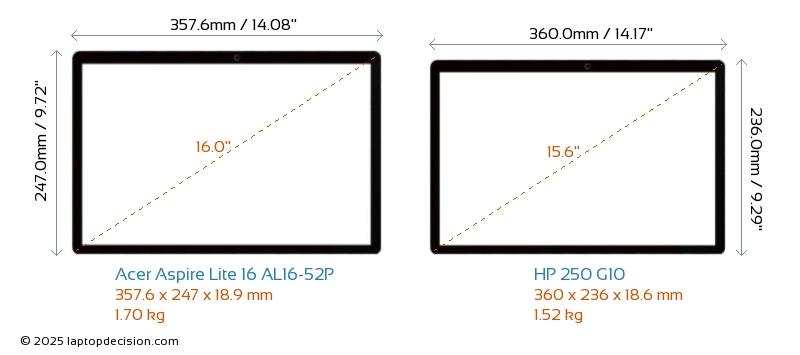 HDMIBoth Aspire Lite 16 AL16-52P and 250 G10 feature an HDMI port (1x HDMI 1.4) for connecting to external monitors.