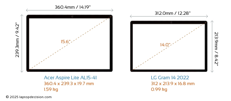 HDMIBoth Aspire Lite AL15-41 and Gram 14 2022 feature an HDMI port. Aspire Lite AL15-41 offers 1x HDMI 1.4, while Gram 14 2022 offers 1x HDMI 2.0.