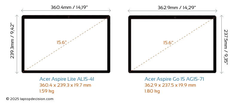 HDMIBoth Aspire Lite AL15-41 and Aspire Go 15 AG15-71 feature an HDMI port. Aspire Lite AL15-41 offers 1x HDMI 1.4, while Aspire Go 15 AG15-71 offers 1x HDMI 2.1.