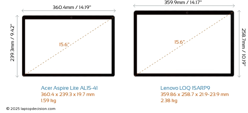 USBBoth Aspire Lite AL15-41 and LOQ 15ARP9 feature 3x USB 3.2 USB-A ports.Both Aspire Lite AL15-41 and LOQ 15ARP9 feature 1x USB 3.2 USB Type-C ports.