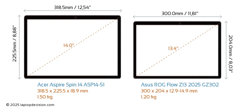 SD Card Reader ROG Flow Z13 2025 GZ302 is equipped with an SD Card Reader for easy access to memory cards. Aspire Spin 14 ASP14-51 does not have an SD Card Reader.