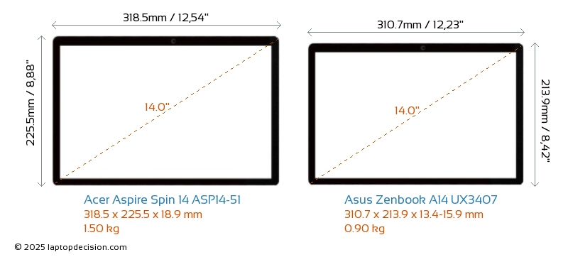 HDMIBoth Aspire Spin 14 ASP14-51 and Zenbook A14 UX3407 feature an HDMI port (1x HDMI 2.1) for connecting to external monitors.