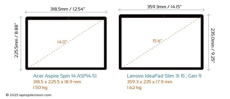 HDMIBoth Aspire Spin 14 ASP14-51 and IdeaPad Slim 3i 15 , Gen 9 feature an HDMI port. Aspire Spin 14 ASP14-51 offers 1x HDMI 2.1, while IdeaPad Slim 3i 15 , Gen 9 offers 1x HDMI 1.4.