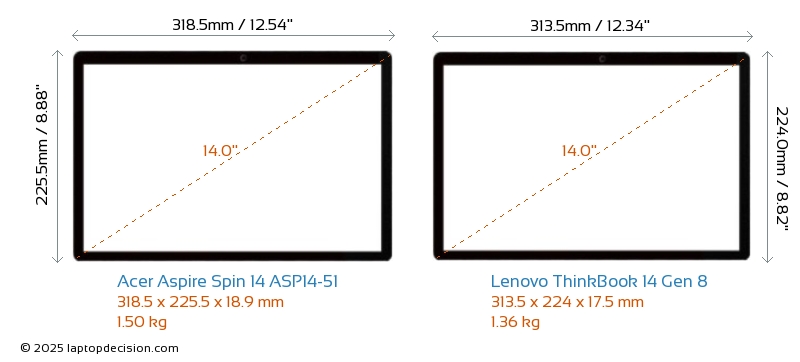 USBBoth Aspire Spin 14 ASP14-51 and ThinkBook 14 Gen 8 feature 2x USB 3.2 USB-A ports.Both Aspire Spin 14 ASP14-51 and ThinkBook 14 Gen 8 feature 2x USB 4.0 USB Type-C ports.