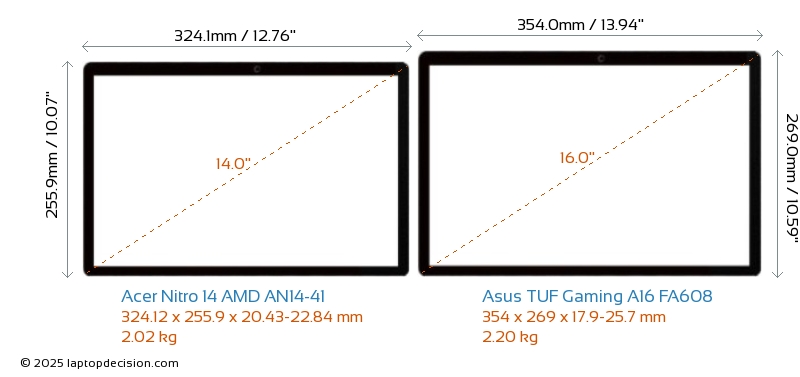 SD Card Reader Nitro 14 AMD AN14-41 is equipped with an SD Card Reader for easy access to memory cards. TUF Gaming A16 FA608 does not have an SD Card Reader.