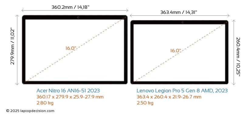 Audio JackBoth Nitro 16 AN16-51 2023 and Legion Pro 5 Gen 8 AMD, 2023 are equipped with a 3.5mm Audio Jack, providing seamless connection to headphones and speakers.