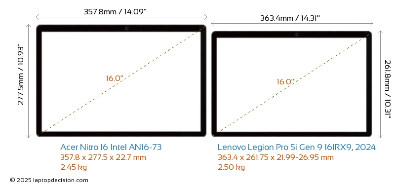 HDMIBoth Nitro 16 Intel AN16-73 and Legion Pro 5i Gen 9 16IRX9, 2024 feature an HDMI port (1x HDMI 2.1) for connecting to external monitors.