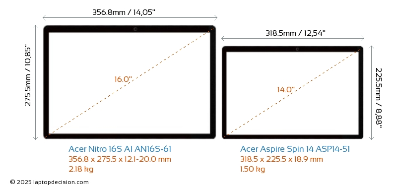 SD Card Reader Nitro 16S AI AN16S-61 is equipped with an SD Card Reader for easy access to memory cards. Aspire Spin 14 ASP14-51 does not have an SD Card Reader.
