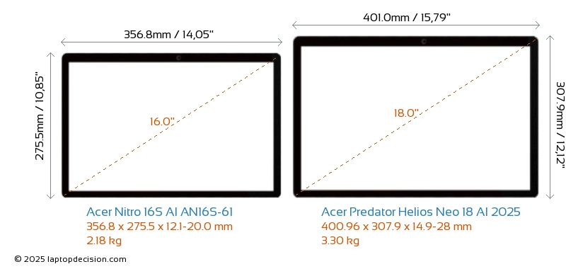 HDMIBoth Nitro 16S AI AN16S-61 and Predator Helios Neo 18 AI 2025 feature an HDMI port (1x HDMI 2.1) for connecting to external monitors.