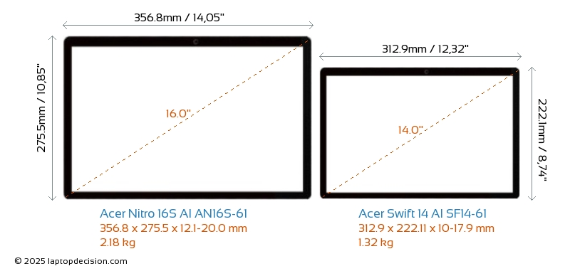 SD Card Reader Nitro 16S AI AN16S-61 is equipped with an SD Card Reader for easy access to memory cards. Swift 14 AI SF14-61 does not have an SD Card Reader.