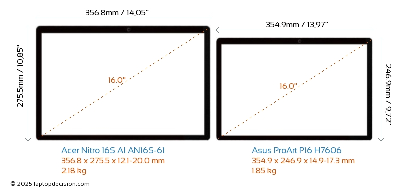 HDMIBoth Nitro 16S AI AN16S-61 and ProArt P16 H7606 feature an HDMI port (1x HDMI 2.1) for connecting to external monitors.