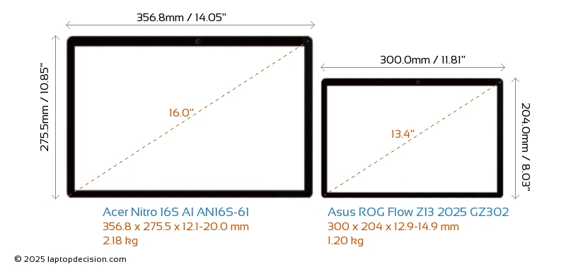ThunderboltNeither Nitro 16S AI AN16S-61 nor ROG Flow Z13 2025 GZ302 has Thunderbolt port.